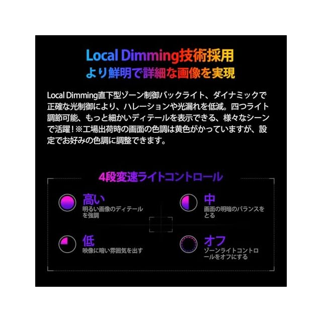 【Mini LED技術採用&HDR1000認証】新世代のQD-MiniLED技術を採用し、1152ゾーンのアレイバックライトにより、モニター画面の明るさを精密に設定し、画面のダイナミックレンジを大幅に向上させ、暗い部分はより暗く、明るい部分はより明るくします。最大1000nitsのHDRピーク輝度というミニLEDの利点により、深みのあるピュアな黒と細部のディテールを映し出し、動画像をより現実の世界に近い没入感のある体験へと導きます。