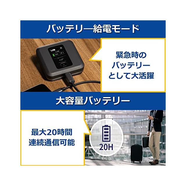 FS040Wは、3,060mAhの大容量バッテリーを搭載していますので、最大20時間の連続通信が可能です。