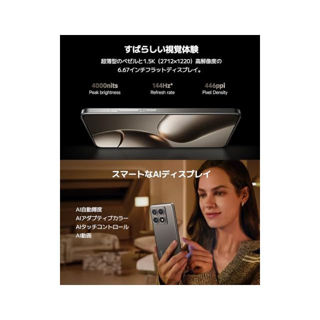 【新世代の144Hz AIディスプレイはなめらかで、目に優しい】薄型ベゼルデザインと1.5K(2712×1220)解像度を備えた6.7インチ有機EL(AMOLED)フラットディスプレイを搭載。新しいカスタム発光素材を採用し、よりパワフルで鮮やかな視覚体験を実現。ディスプレイは、さまざまな使用シーンや時間に応じて色温度と輝度を最適に調整し、ブルーライトを効果的に低減して目の健康を守り、より優れたアイケア効果をします。