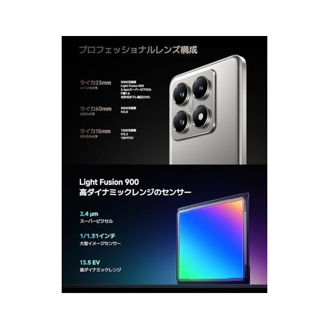 商品名:シャオミ(Xiaomi) SIMフリースマートフォン Xiaomi 14T Pro 12GB+256GB ライカ Summilux光学レンズ搭載 Advanced AI 120Wハイパーチャージ MediaTek Dimensity 9300+搭載 IP68防水防塵 FeliCa対応 チタングレー