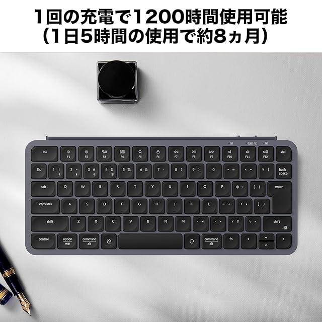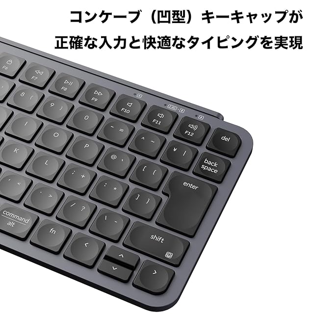 【1回の充電で1200時間使用可能】 最大1200時間のバッテリー寿命で、途切れることなく使用できます。また、凹型のコンケーブキーキャップは正確な入力をし、指に自然にフィットする快適なタイピングを実現します。