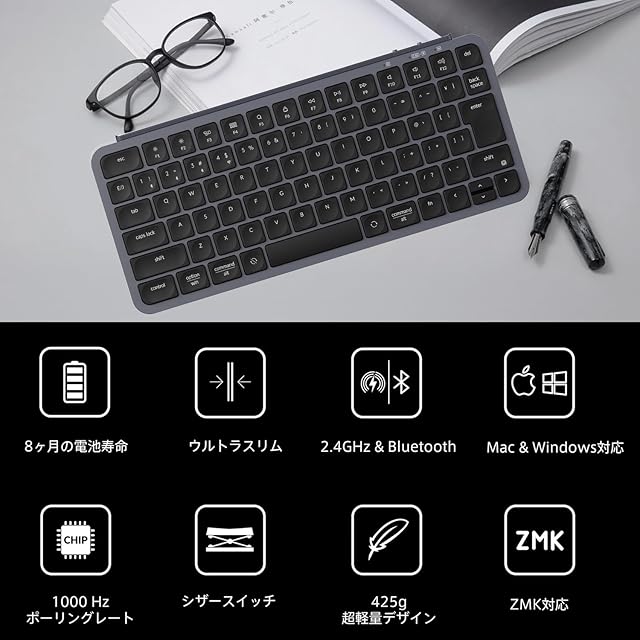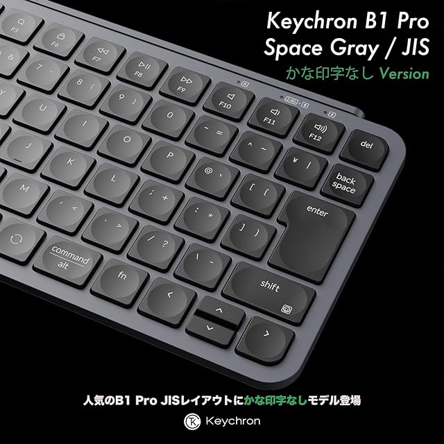 商品名:【国内正規品】Keychron B1 Pro ウルトラスリム ワイヤレスキーボード、ZMKカスタマイズ、シザースイッチ、2.4 GHz/Bluetooth 5.2/有線接続、ロングバッテリーライフ、Mac Windows Linux対応 (スペースグレー(かな印字なし), JISレイアウト)