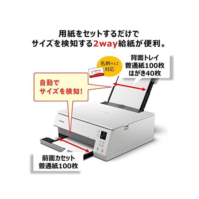 給紙:前面カセット給紙(A4普通紙100枚)、背面給紙トレイ(A4普通紙100枚)