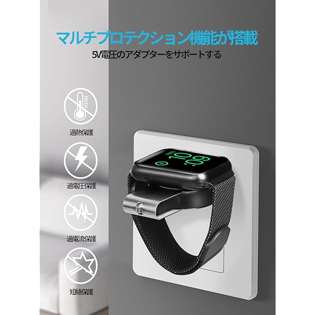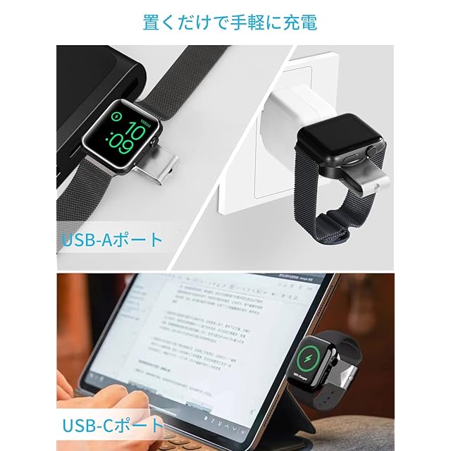 アップルウォッチ 全シリーズ対応可能:アップルウォッチ専用充電器。Apple Watch Ultra/Apple Watch Series 10/9/8/7/SE/6/5/4/3/2/1/Nike+/Edition/Hermes全シリーズに対応。44 mm/40 mm/42 mm/38 mm すべてのApple Watchで使えます。マグネット式設計により、ウオッチを自動的に、ピッタリと吸着して充電します。