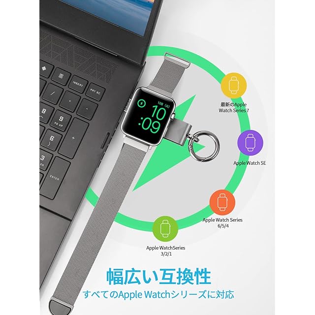 持ち運びが便利:アップルウォッチ充電器は軽量で持ち運びに便利であり、わずか20グラムしか重さがありません。また、登山用のカラビナが付属しており、鍵と一緒に持ち歩くことができ、紛失を防ぐことができます。家や旅先、オフィスなど様々な場面で使用することができます。旅行やビジネス旅行に最適です。
