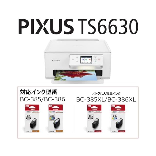 商品名:キヤノン Canon プリンター A4インクジェット複合機 PIXUS TS6630 自動両面 4色・一体型・対応インクBCI-386/385シリーズ 【2023年秋冬モデル】