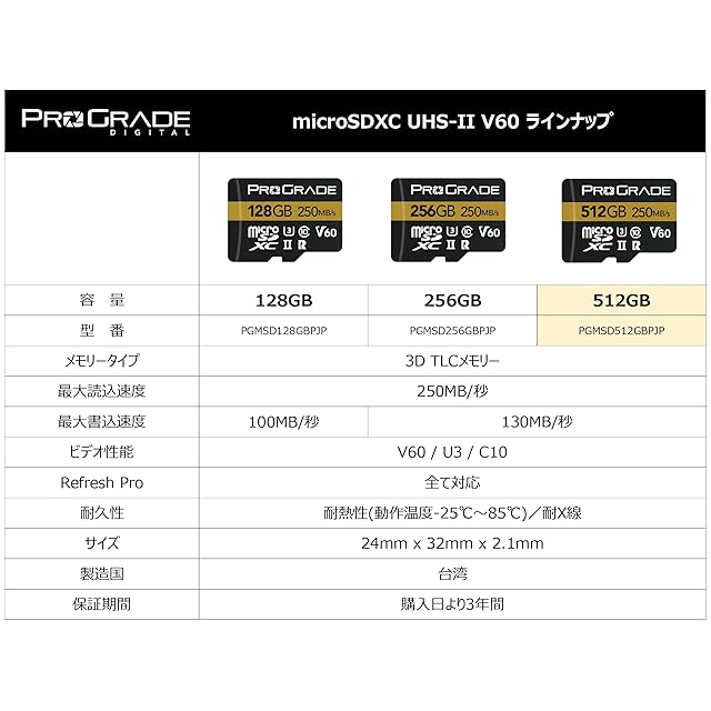 商品名:ProGrade Digital microSDXC UHS-II V60 GOLD 512GB プログレードデジタル 正規輸入品