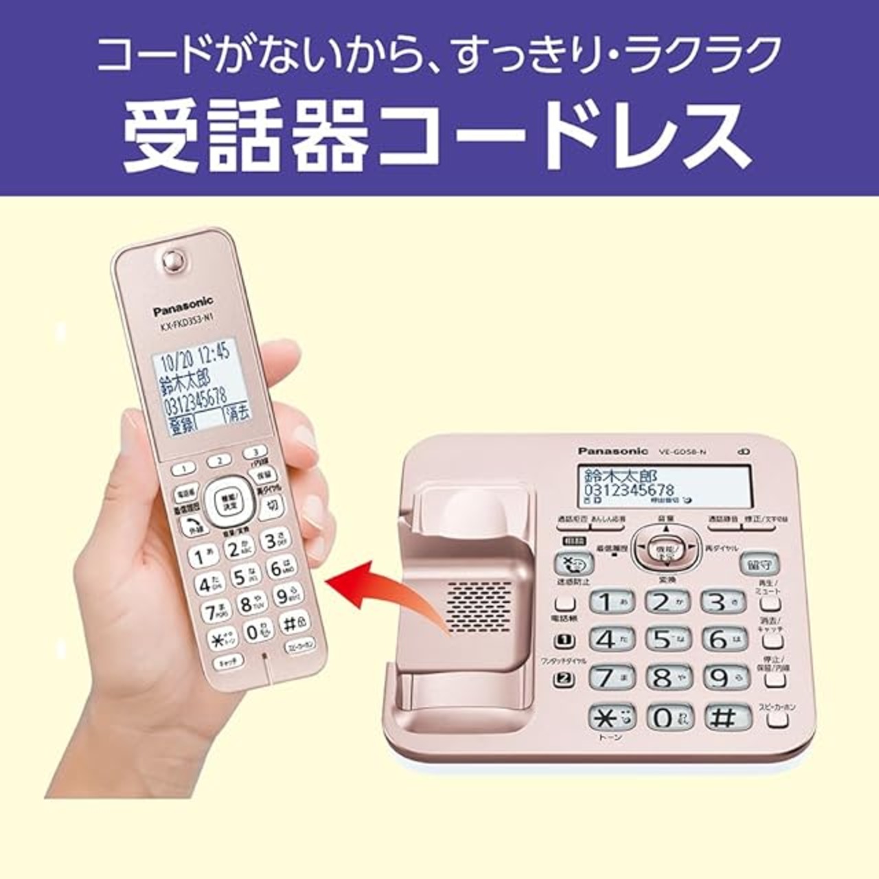✅親機の受話器もコードレスでスッキリ。