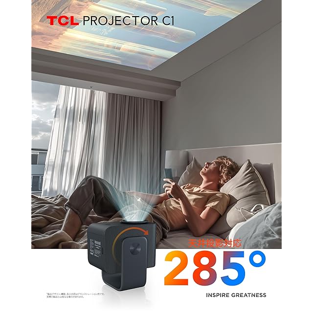 商品名:TCL C1 GTV ポータブルプロジェクター ネイティブ1080P対応 / 内蔵ジンバル搭載/Google TV公式認証/Wi-Fi・Bluetooth対応/完全密閉型光学エンジン/オートフォーカス / 8Wドルビーデジタルオーディオ / 最大120インチ投影 / 天井投影対応