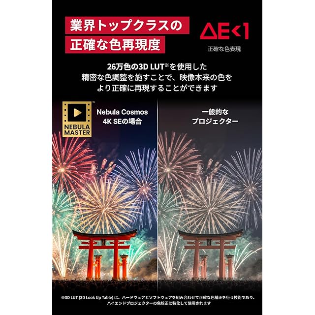 【独自エンジン「NebulaMaster」搭載】フレームごとに綿密な映像調整を施すことで、鮮明なコントラストと正確な色彩を表現。映像本来の繊細さをお楽しみいただけます。