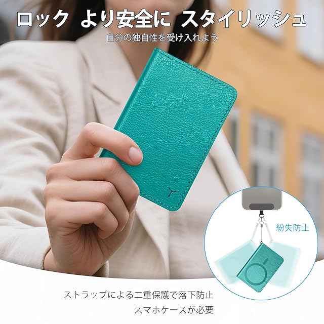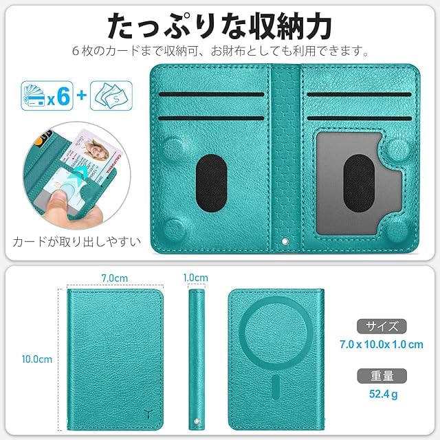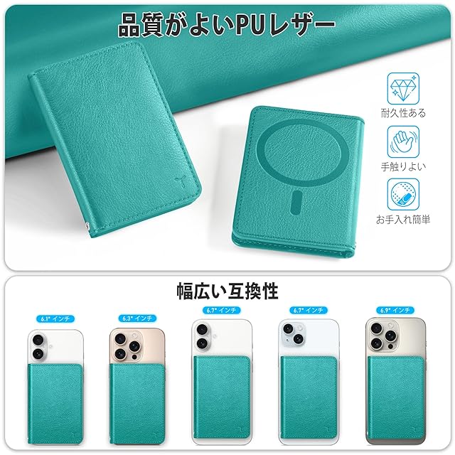 商品名:[TUCCH] スマホカードケース 磁気吸着 6枚カード収納 [RFIDブロッキング] PU合皮 脱着簡単 軽量 背面 カードウォレット 磁気ウォレットケース iPhone 16/15/14/13/12シリーズ対応 シアン