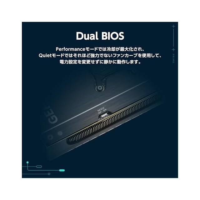 0dBテクノロジー:GPU温度が50°C未満でファン停止、55°C以上で再起動し、性能と静音を両立。