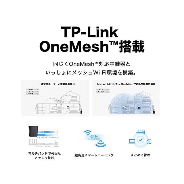 商品名:TP-Link WiFi ルーター 無線LAN WiFi6 11AX AX6000 4804 + 1148Mbps 2.5Gbps WAN/LANポートx1 縦型 IPv6 IPoE VPN OneMesh 対応 メーカー3年 Archer AX80/A