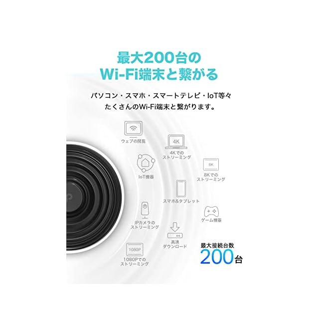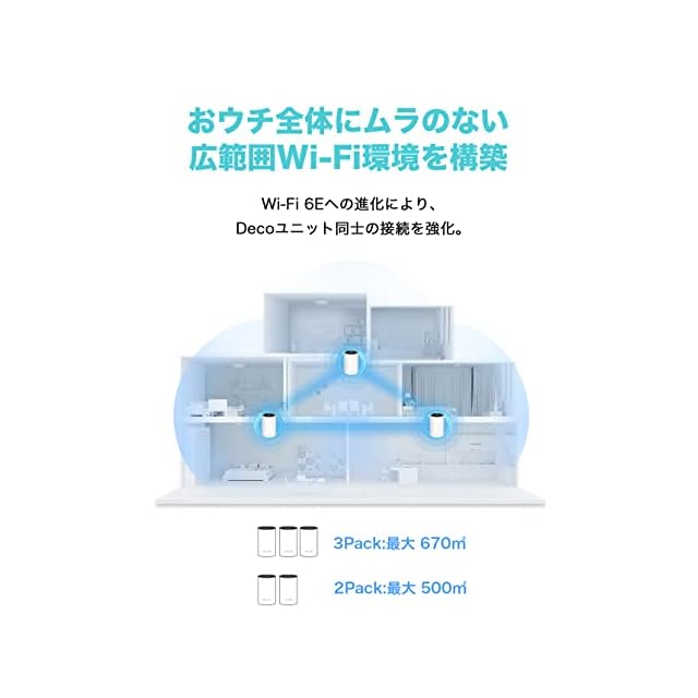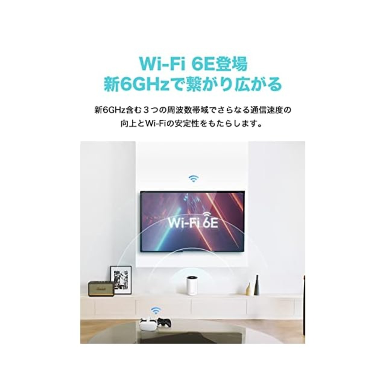 [特徴] Wi-Fi6Eで新たなメッシュWi-Fi環境を構築。新規格 6GHzにより、新次元のメッシュWi-Fi環境を体感。既存のDecoとの併用も可能。