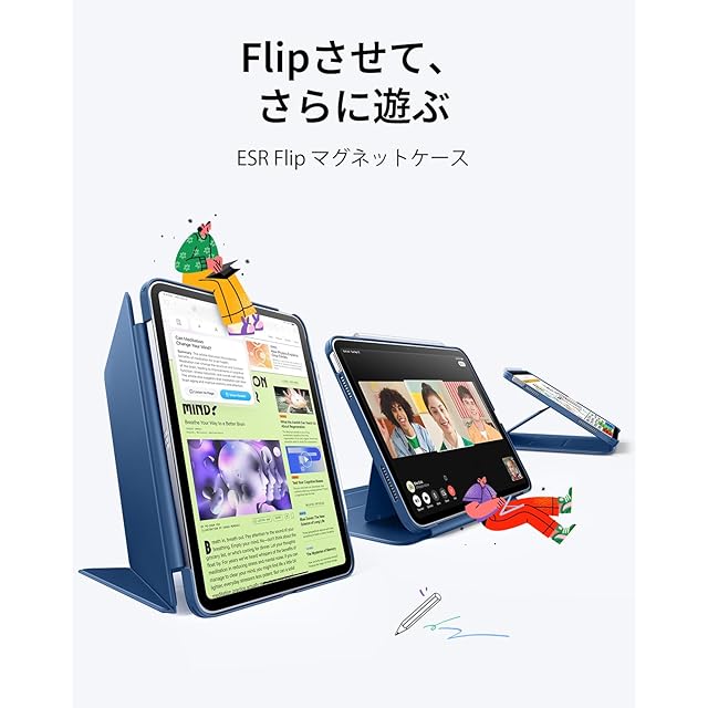 ESR iPad 11世代 ケース A16 iPad 第10世代 / 第11世代 専用カバー (2022/2025モデル) 耐衝撃 縦横スタンド 自動ウェイク/スリープ マルチアングルケース ペン収納なし 安定設計 11インチ/10.9インチ Flipシリーズ ネイビーブルー
