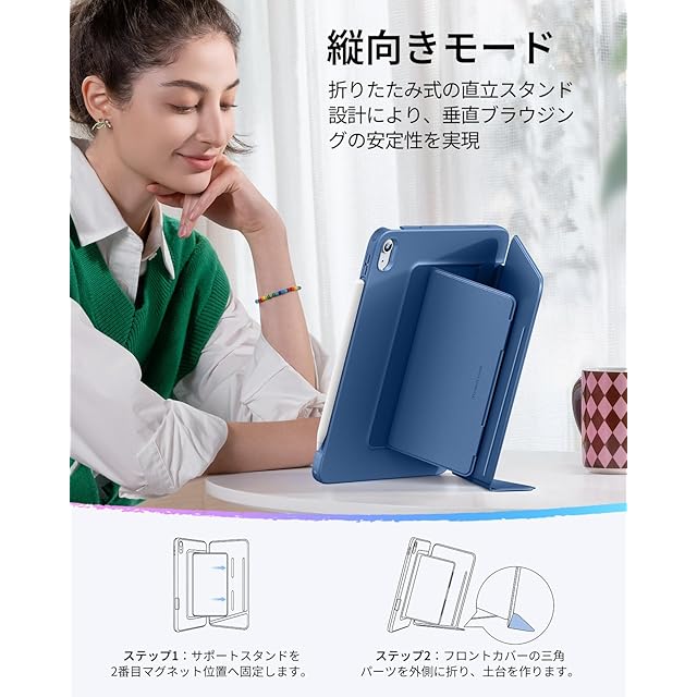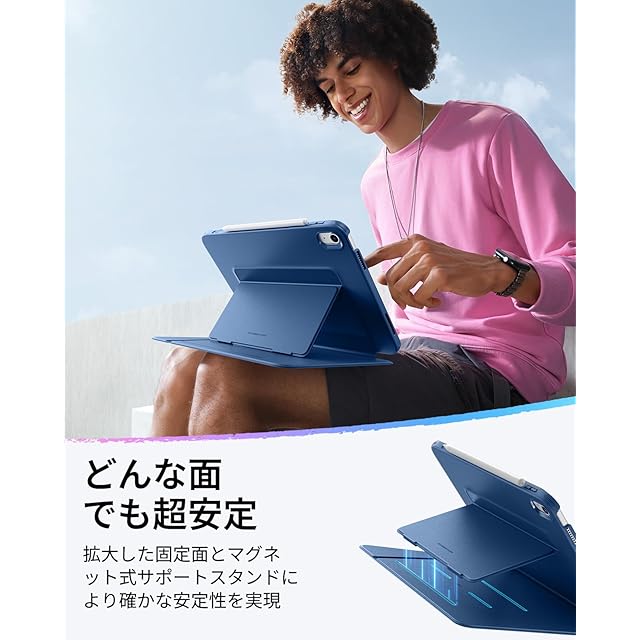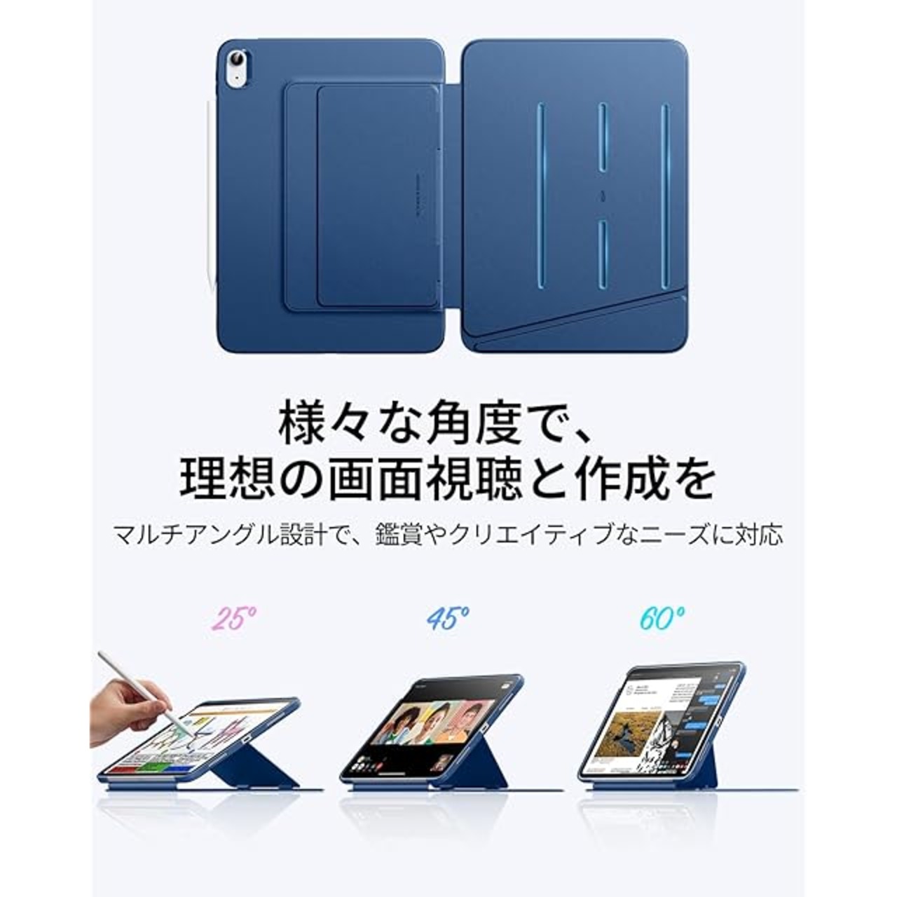 商品名:ESR iPad 11世代 ケース A16 iPad 第10世代 / 第11世代 専用カバー (2022/2025モデル) 耐衝撃 縦横スタンド 自動ウェイク/スリープ マルチアングルケース ペン収納なし 安定設計 11インチ/10.9インチ Flipシリーズ ネイビーブルー