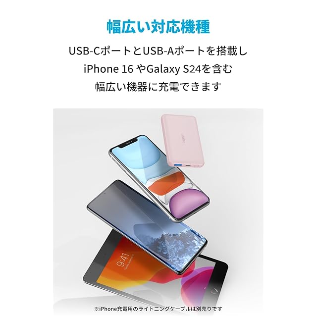 商品名:Anker PowerCore III 5000 (5000mAh 小型軽量 モバイルバッテリー) 【 USB-Cポート搭載/PSE技術基準適合 】iPhone 16 / 15 / 14 / 13 Galaxy S22 Pixel その他 各種機器対応 (ピンク)