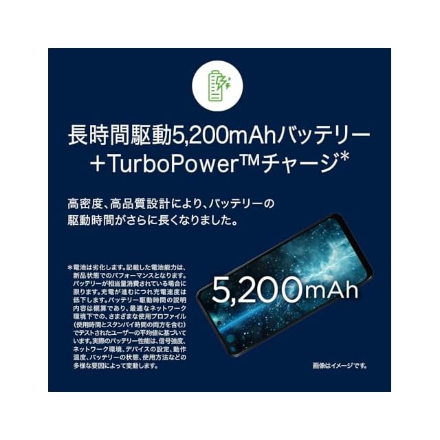 メインディスプレイ : 約6.7インチ 1,612x720 (HD+)、 LCD、20:9、リフレッシュレート 90Hz