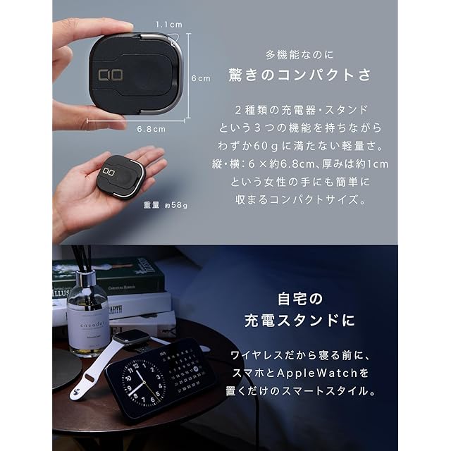 商品名:CIO NovaWave 3Way ワイヤレス充電器 3in1マグネット 最大7.5W iPhone 16 / 15 / 14 / 13 / 12 / AppleWatch AirPods 充電器 スマホスタンド (ブラック)