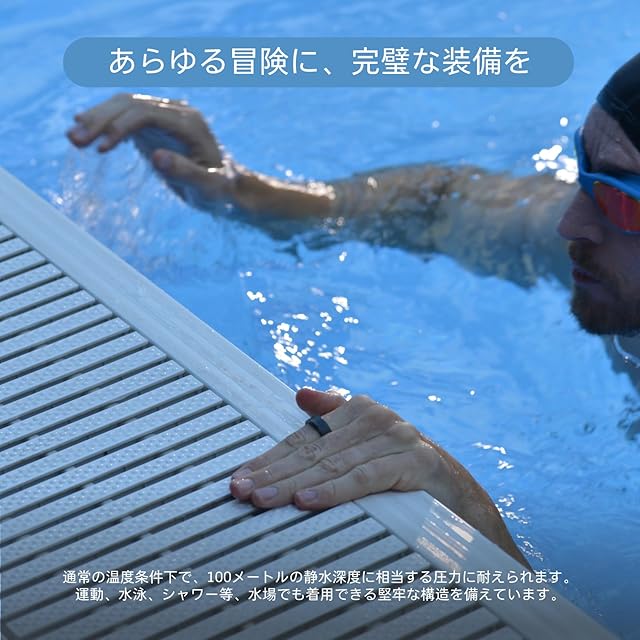 【あらゆる冒険に対応する防水性能】100mの防水性能を備えたRingConn Gen 2スマートリングは、日常着用、ワークアウト、水泳に最適。敏感肌の方でも快適な耐久性を実現しています