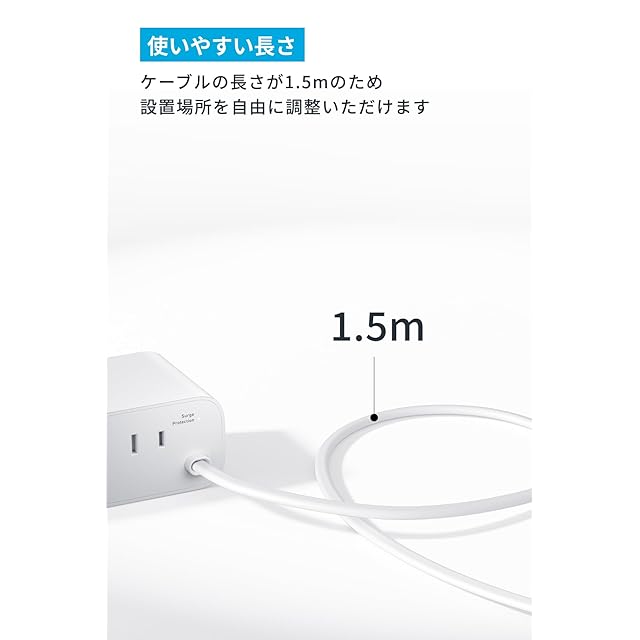 商品名:Anker Charging Station (7-in-1, 100W) (USBタップ 電源タップ AC差込口 3口 USB-C 2ポート USB-A 2ポート 延長コード 1.5m) ホワイト