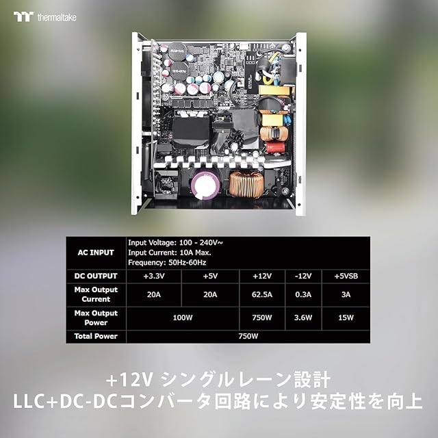 商品名:Thermaltake TOUGHPOWER GT 750W Snow ATX 3.1/PCI Express 5.1対応 80PLUS GOLD PC電源ユニット ホワイト PS-TPT-0750FNFAGJ-W PS1502
