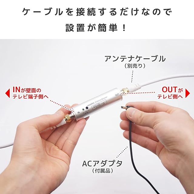 商品名:ホーリック アンテナブースター 室内・地デジ(UHF/VHF)専用 中継タイプ HAT-ABS024