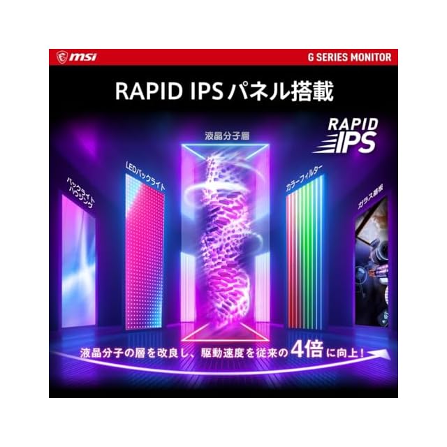 ●最大リフレッシュレート:180Hz●応答速度:1ms(GTG)●パネル駆動方式:RAPID IPS●表面タイプ:ノングレア