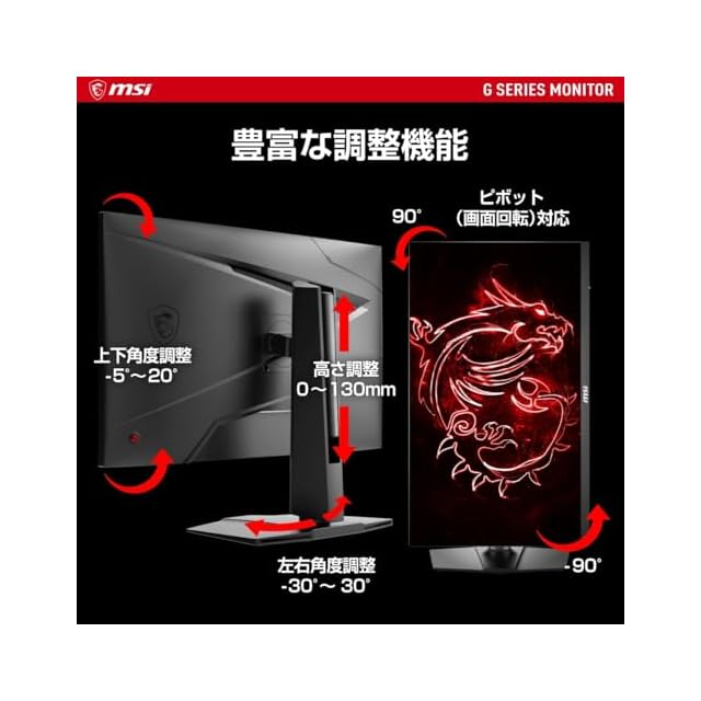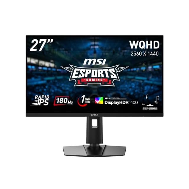 商品名:MSI ゲーミングモニター G274QPF E2 27インチ/WQHD/RAPID IPSパネル/180Hz/1ms(GTG)/Adaptive-Sync/DisplayHDR 400/HDMI/DP/USB Type-C/縦横回転・高さ調整/メーカー3年