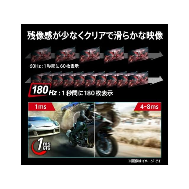 ●最大リフレッシュレート:180Hz●応答速度:1ms(GTG)●パネル駆動方式:RAPID IPS●表面タイプ:ノングレア
