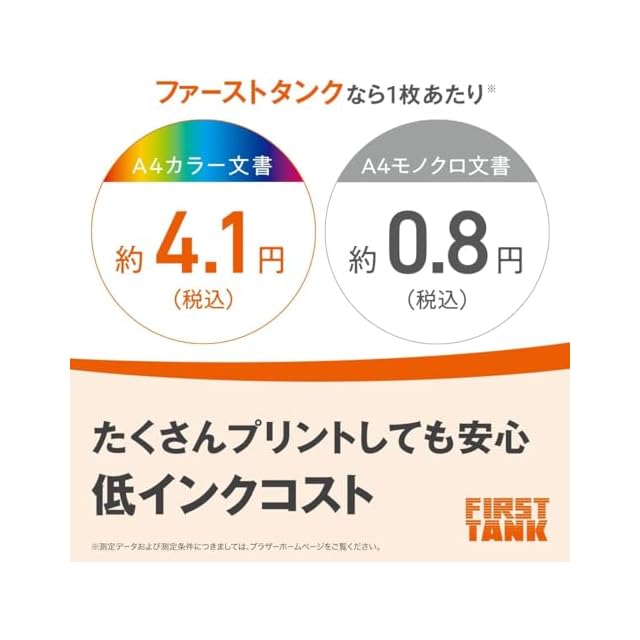 A4文書印刷時(1枚あたり)のインクコスト:(カラー)約4.1円(税込)/(モノクロ)約0.8円(税込)で、低ランニングコストを実現、対応インク:LC416XLBK/LC416XLC/LC416XLM/LC416XLY・LC416BK/LC416C/LC416M/LC416Y
