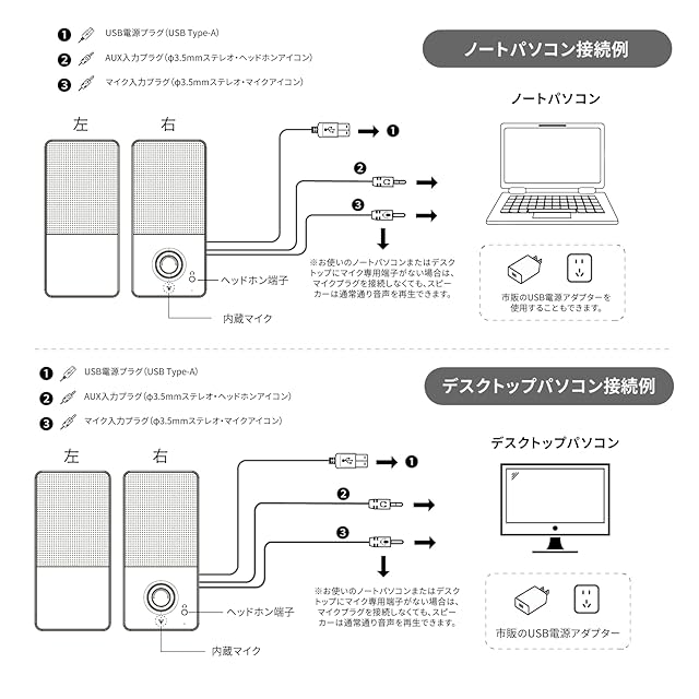 【商品仕様&安心】(本体)サイズ:幅8cm×奥行8cm×高さ16.3cm / 重量:約 635g /機器と接続するためのオーディオ/マイク/USB接続ケーブルの長さ:約125cm /左右のスピーカーを接続するブリッジケーブルの長さ:約108cm/出力:総合(RMS)14W/ Bluetoothバージョン:5.4 ▼購入後12ヶ月のメーカー▼便利な日本語説明書付き