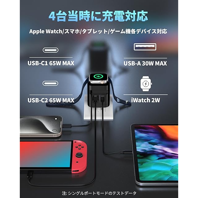 幅広い互換性対応⇒USB充電器はPD3.0、QC4+、QC3.0、QC2.0、PPS、SCP、FCP、AFC、PE+などの充電規格に対応します。当社の65W充電器はシングルポートモードでC1 / C2ポートから最大65W、USB-Aポート単一使用時も最大30W充電できます。MacBook Pro/Air、iPhone 15 14 Pro/Pro Max/Plus、Samsung Galaxy S23/S22、iPad、その他USB-C対応デバイス等あらゆるデバイスへ最適・最速のスピードで充電を実現します。
