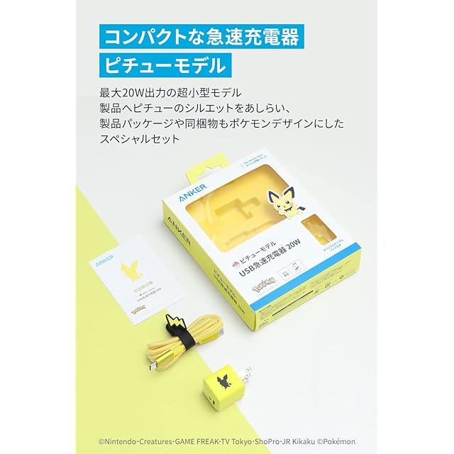 Anker USB急速充電器 20W ピチューモデル (PD 充電器 20W USB-C 超小型急速充電器)【PSE技術基準適合/PowerIQ 3.0 (Gen2)搭載】 iPhone 15 iPad Air(第5世代) その他 各種機器対応 USB-C & USB-C ケーブル同梱 ポケモンケーブルバンド ポケモンデザイン | TREND DESIGN 家電専門店