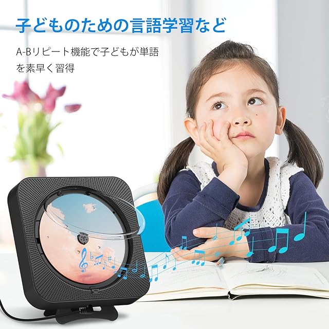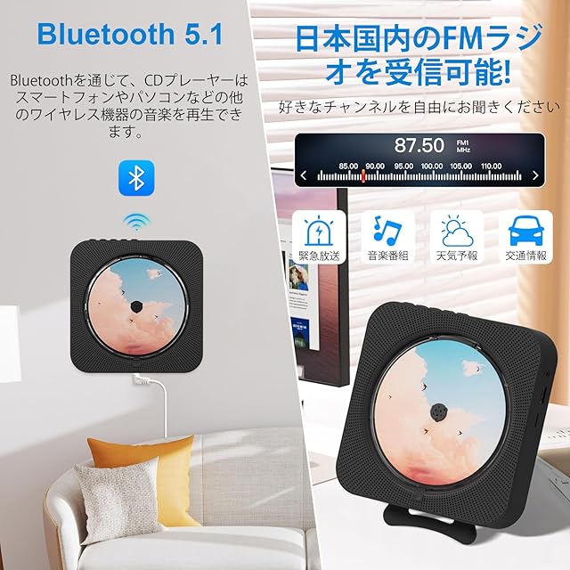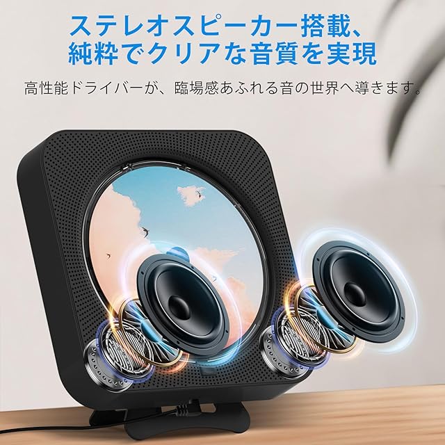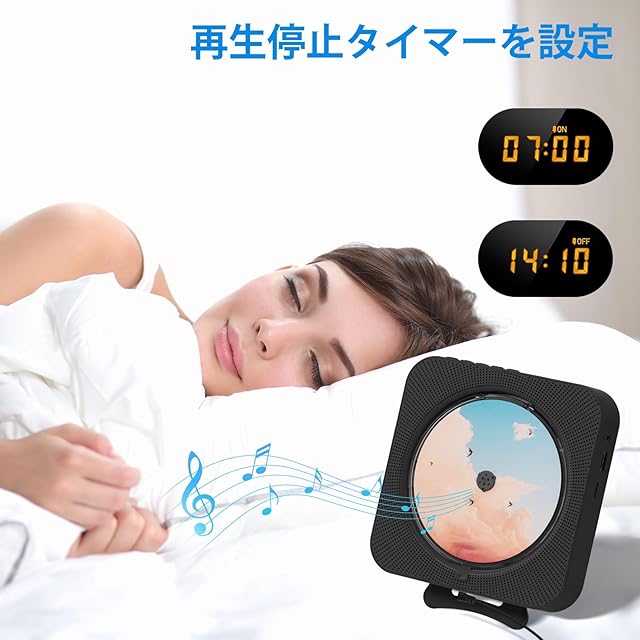 【壁掛け&卓上対応cd プレーヤー】 ポータブルcdプレーヤーは背面にスタンドを備えており、デスクの上でも安定して設置できます。付属の取り付けキットを使えば、壁掛け設置も簡単にでき、省スペースにも最適です。5メートル以内でリモコン操作が可能なほか、タイマー機能も搭載しており、好きな時に自由に音楽をお楽しみいただけます。