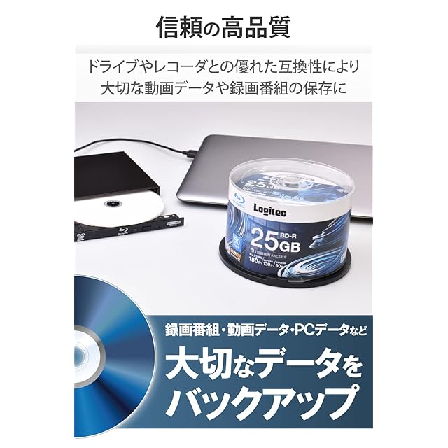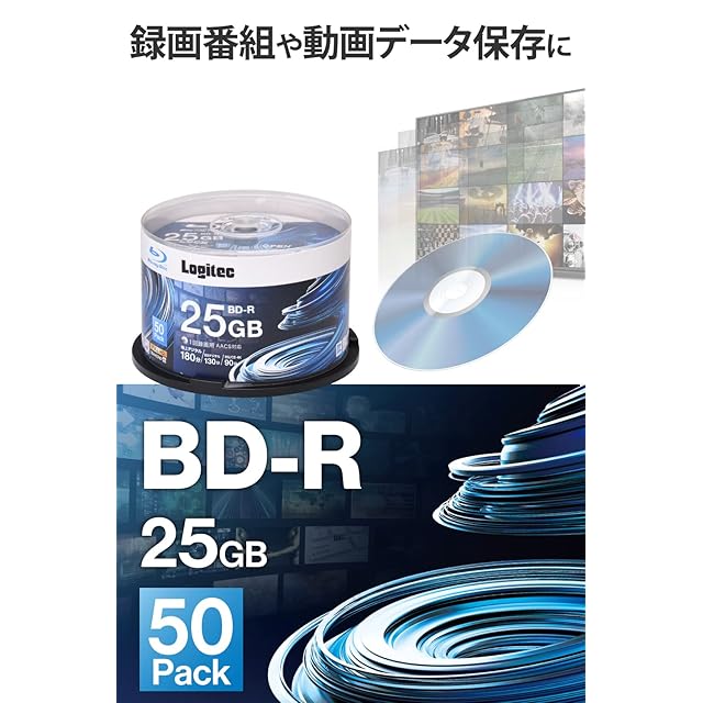 商品名:ロジテック BD-R AACS対応 ブルーレイディスク Blu-ray Disc 6倍速 1回録画用 記録用 25GB 記録メディア スピンドルケース 50枚入り LM-BR25VWS50W