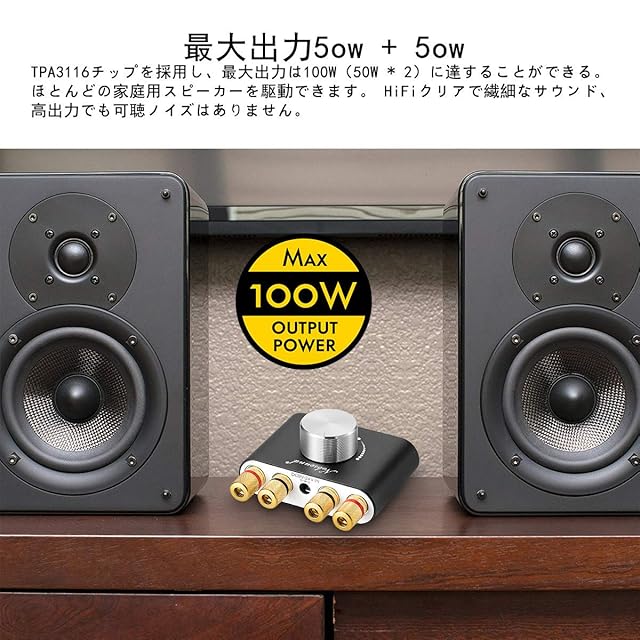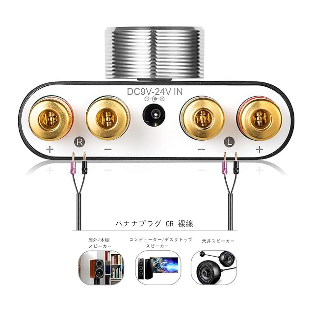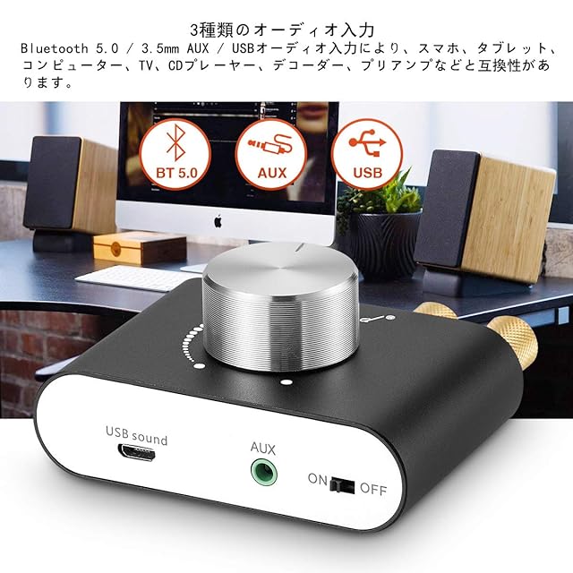Bluetoothレシーバーとパワーアンプ(Headphone Amplifier)の2-In-1アンプです。スマホなど無線でスピーカに繋がります。