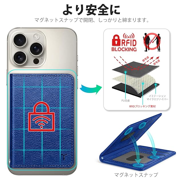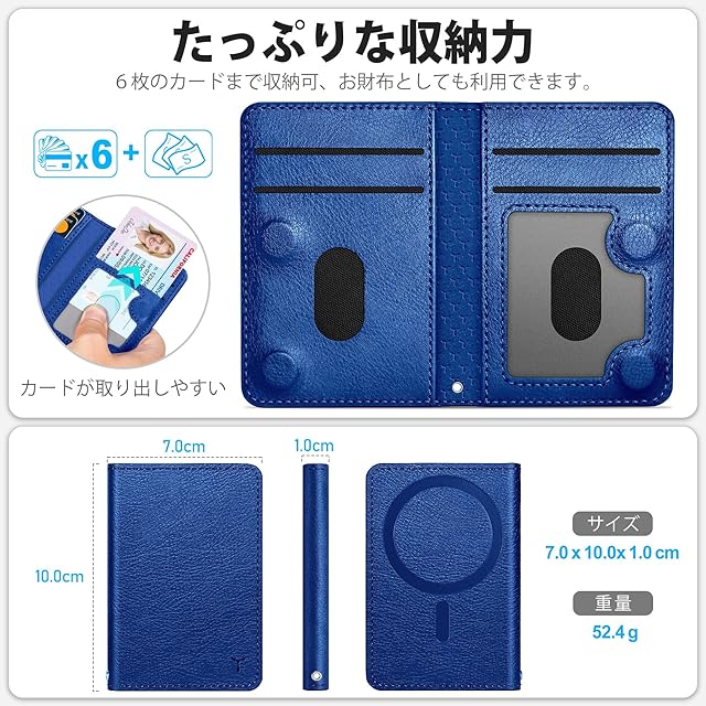 [TUCCH] スマホカードケース 磁気吸着 6枚カード収納 [RFIDブロッキング] PU合皮 脱着簡単 軽量 背面 カードウォレット 磁気ウォレットケース iPhone 16/15/14/13/12シリーズ対応 クラインブルー | TREND DESIGN 家電専門店