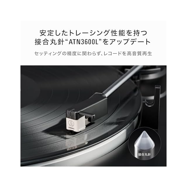 半世紀以上愛された、接合丸針を搭載する『ATN3600L』をアップデート:カートリッジが多少傾いてセッティングされていても、針先がレコード盤の溝に正しく接触する特長を持つ接合丸針『ATN3600L』。使いやすさや品質・音質はそのままに、時代に応じた外観にアップデートしました。『ATN3600L』との互換性があり、簡単に交換可能です。