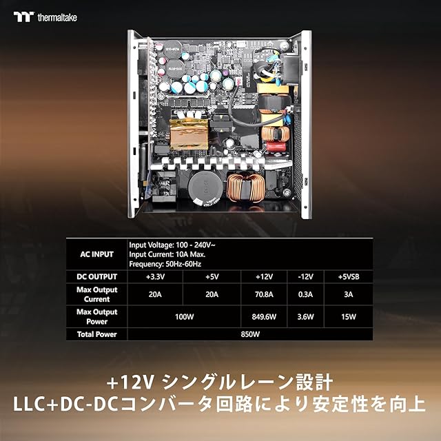 商品名:Thermaltake TOUGHPOWER GT 850W ATX 3.1/PCI Express 5.1対応 80PLUS GOLD PC電源ユニット PS-TPT-0850FNFAGJ-3 PS1496