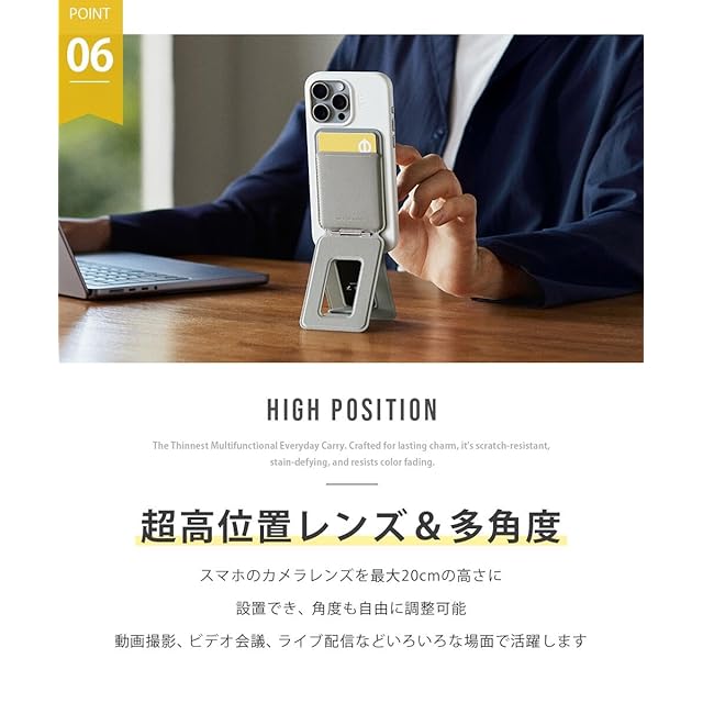 【様々なシーンで活躍!超高位置レンズ&多角度】 スマホのカメラレンズを最大20cmの高さに設置でき、角度も自由に調節することが可能です。動画撮影、ビデオ会議、ライブ配信などで活躍します。