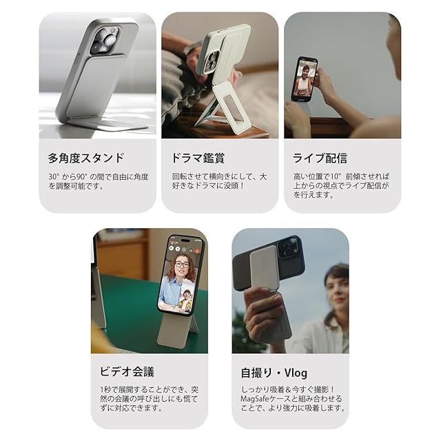 MOFT 七変化マルチスタンド 【全機種対応/アイアンリング付き 】 MOVAS iPhone16 スタンド 16/154/13/12 シリーズ マグネット スマホスタンド MagSafe対応 多角度調節 薄型軽量 折り畳み式 ミニマリスト 全機種対応 (トープ, カード収納付きタイプ) | TREND DESIGN 家電専門店