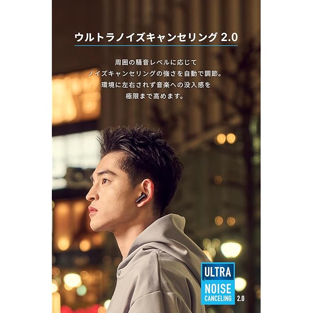 ウルトラノイズキャンセリング 2.0: 周囲の騒音レベルに応じてノイズキャンセリングの強さを自動で調節。環境に左右されず音楽への没入感を極限まで高めます。