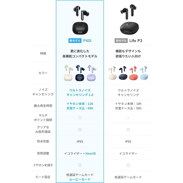 Anker Soundcore P40i (Bluetooth 5.3) 【完全ワイヤレスイヤホン/ウルトラノイズキャンセリング 2.0 / マルチポイント接続 / 最大60時間再生 / PSE技術基準適合】ネイビー | TREND DESIGN 家電専門店