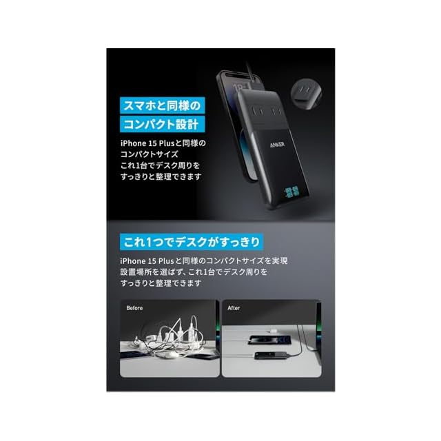 超コンパクト設計:iPhone 15 Plusと同様のコンパクトサイズ。これ1台でデスク周りをすっきりと整理できます。