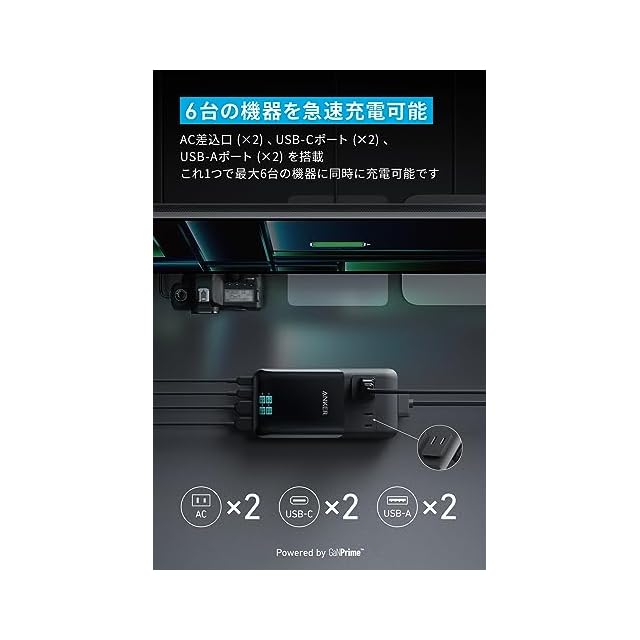 Anker最新の独自技術「GaNPrime」を採用:GaN搭載充電器が前シリーズから進化。超高出力&超小型化に成功しながら複数ポートへの充電が可能です。