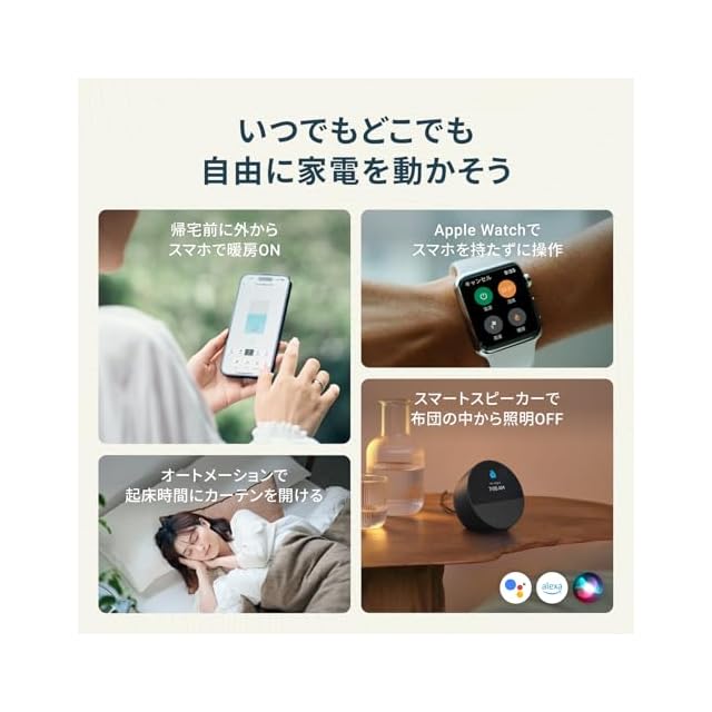 【日々のルーティンを自動化】送付なセンサーを使ったオートメーション機能で、好きな条件で家電を自動で操作できます。夜決まった時間に照明やテレビをOFFにすれば、お子様の生活習慣づけにも役立ちます。