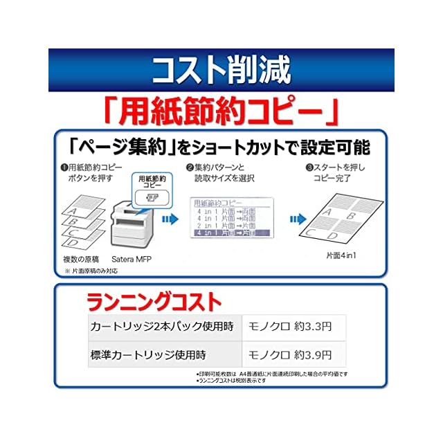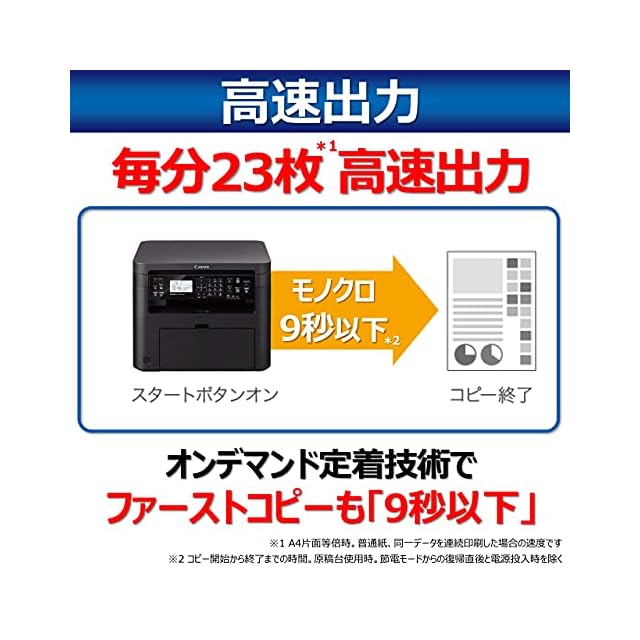 A4毎分23枚(A4片面等倍時。普通紙、同一データを連続印刷した場合の速度)ファーストコピー9秒以下