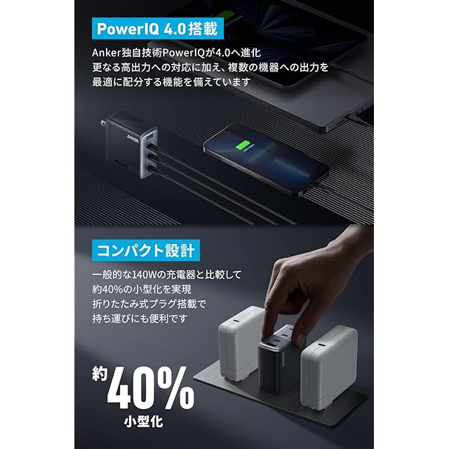 商品名:Anker 747 Charger (GaNPrime 150W) (USB PD 充電器 USB-A & USB-C 4ポート) MacBook PD対応Windows PC iPad iPhone Galaxy Android スマートフォン ノートPC