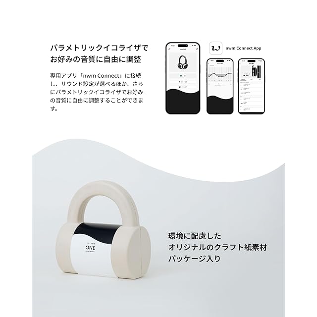 音を心ゆくまで楽しめる、ユーティリティな機能。|360 Reality Audio、次世代Bluetooth規格LE Audio/Auracast、マルチポイントにも対応し、専用アプリ「nwm Connect」 でパラメトリックイコライザ調整も可能。接続方法はBluetoothによるワイヤレス接続、付属のUSB Type-CケーブルによるUSBオーディオ接続が可能です。最大再生時間 約20時間。5分の充電で1時間のリスニングが可能です。